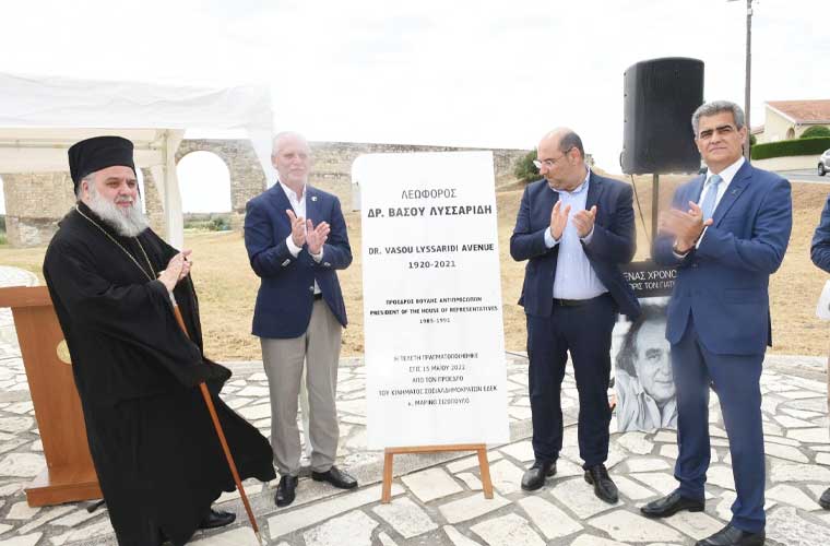 Πραγματοποιήθηκε η τελετή μετονομασίας της Λεωφόρου Λεμεσού σε Λεωφόρο Βάσου Λυσσαρίδη, παρά το Αρχαίο Υδραγωγείο Καμάρων στη Λάρνακα. Τα αποκαλυπτήρια τέλεσαν ο Πρόεδρος της ΕΔΕΚ, Μαρίνος Σιζόπουλος, ο Δήμαρχος Λάρνακας Ανδρέας Βύρας, ο Δήμαρχος Αραδίππου Ευάγγελος Ευαγγελίδης και ο Μητροπολίτης Κιτίου Νεκτάριος.