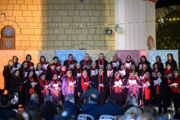 Με τη δημοτική χορωδία Αραδίππου να ψάλλει τα κάλαντα και με τους ταλαντούχους Χρίστο Τελεβάντο στο τραγούδι και Νίκο Νικολάου στο σαξόφωνο, η βραδιά πλαισιώθηκε σε ήχους γιορτινούς και τζαζ, δημιουργώντας ένα κλίμα κατάνυξης.
