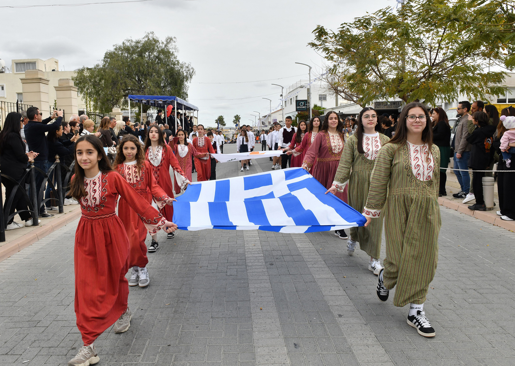 Οι εκδηλώσεις συνεχίστηκαν με παρέλαση μαθητών και οργανωμένων συνόλων στη Λεωφόρο Μακαρίου και ολοκληρώθηκαν με κατάθεση στεφάνων στο Μνημείο Πεσόντων, αποδίδοντας την πρέπουσα τιμή σε όσους αγωνίστηκαν για την πατρίδα.